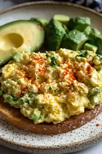 A Morning Delight: Fluffy Scrambled Eggs with Creamy Avocado