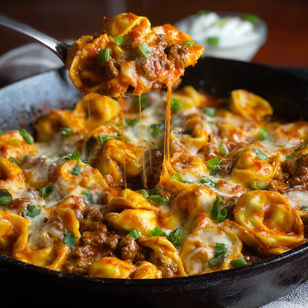 Get ready for a weeknight dinner revolution! This Cheesy Taco Tortellini Skillet combines two beloved comfort foods—tacos and tortellini—into one incredible, easy-to-make, one-pan meal. Imagine savory taco-seasoned ground beef, tender cheese tortellini, and a zesty tomato sauce, all brought together under a glorious blanket of melted cheddar cheese.