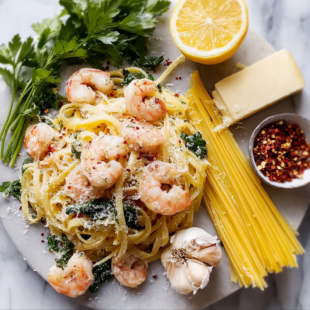 Sauté the Shrimp: While the pasta is cooking, melt the butter in a large skillet over medium-high heat. Add the shrimp and season with salt and pepper. Cook for 2-3 minutes, stirring occasionally, until the shrimp are pink and opaque. Add the minced garlic and red pepper flakes (if using) and cook for another minute until fragrant.