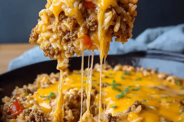 Get ready for your new go-to weeknight dinner! This Cheesy Queso Ground Beef and Rice is a flavor-packed, one-pan marvel that brings the irresistible taste of Tex-Mex queso dip to your dinner table. Imagine savory ground beef and fluffy rice simmered in a creamy, cheesy queso sauce with a kick of green chilies.